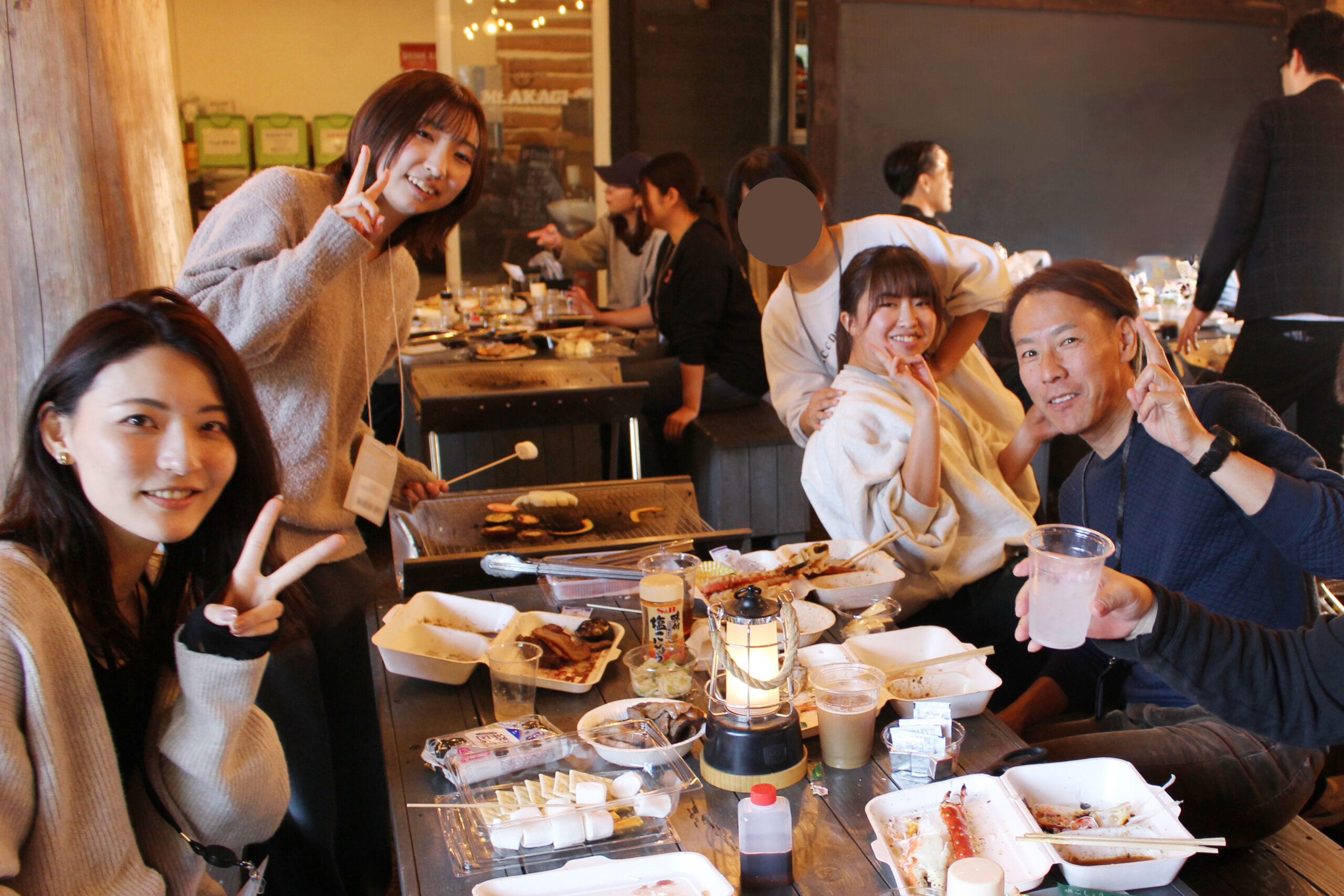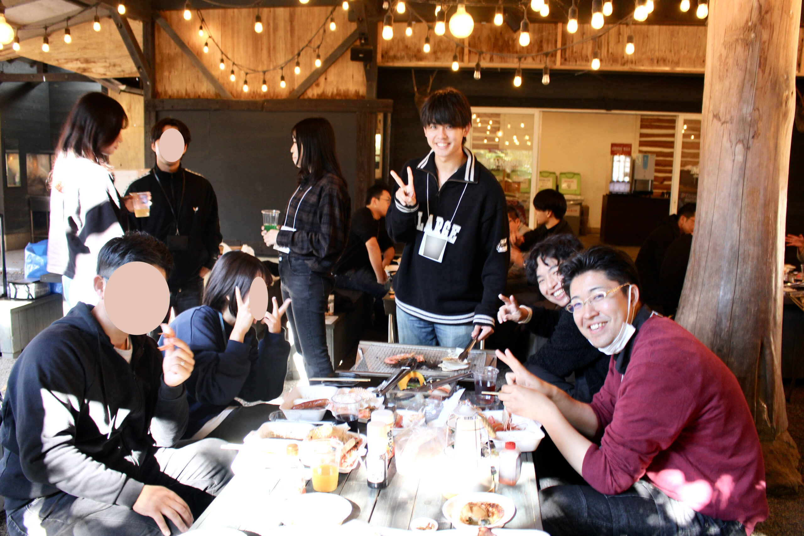 部長も先輩スタッフも役員も内定者の皆さんも、お肉を囲んでピース ![]()