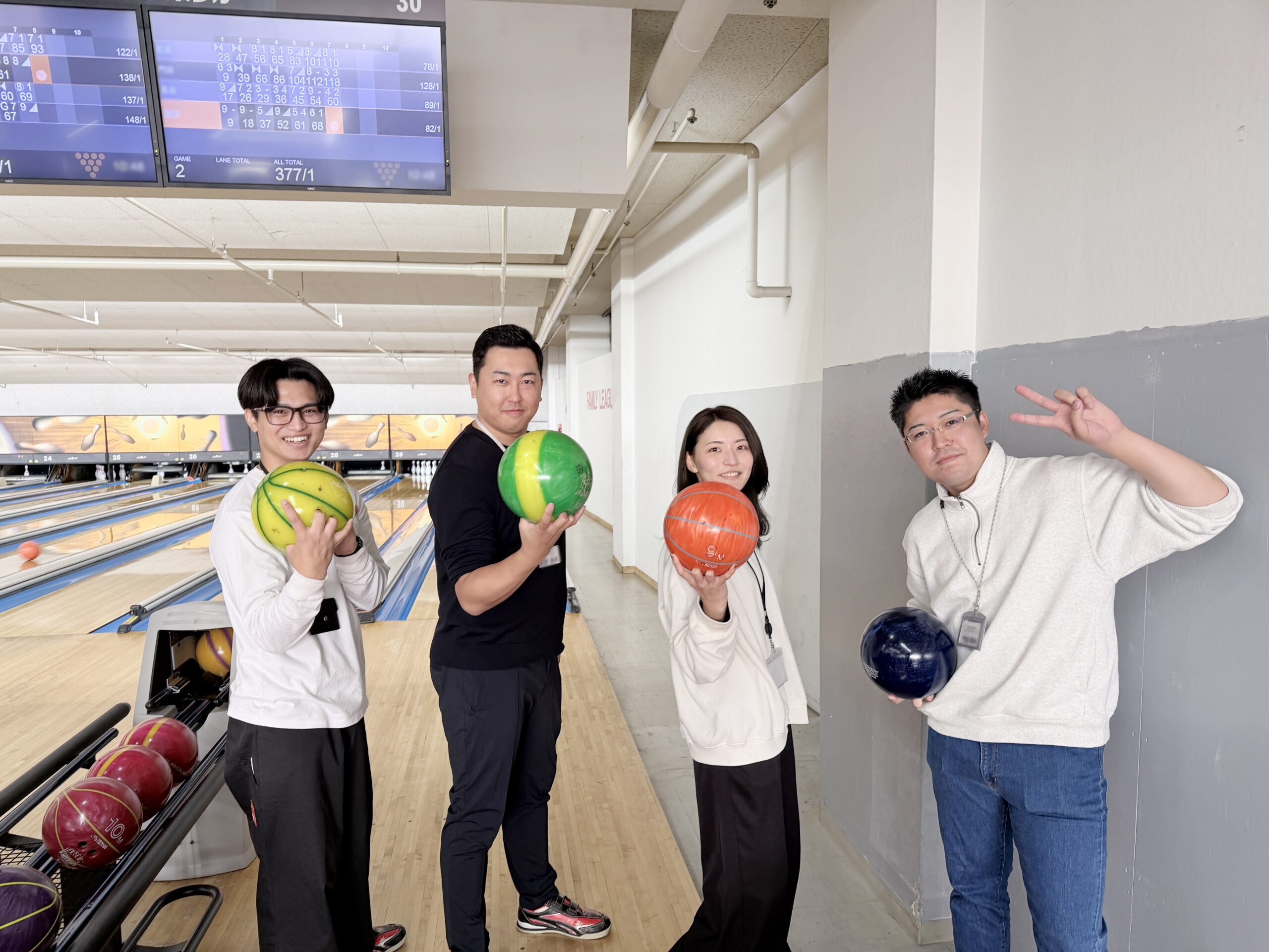 普段は部署の異なるスタッフや内定者の皆さんも交えてでチーム分けを行いボーリングを楽しみました ![]()