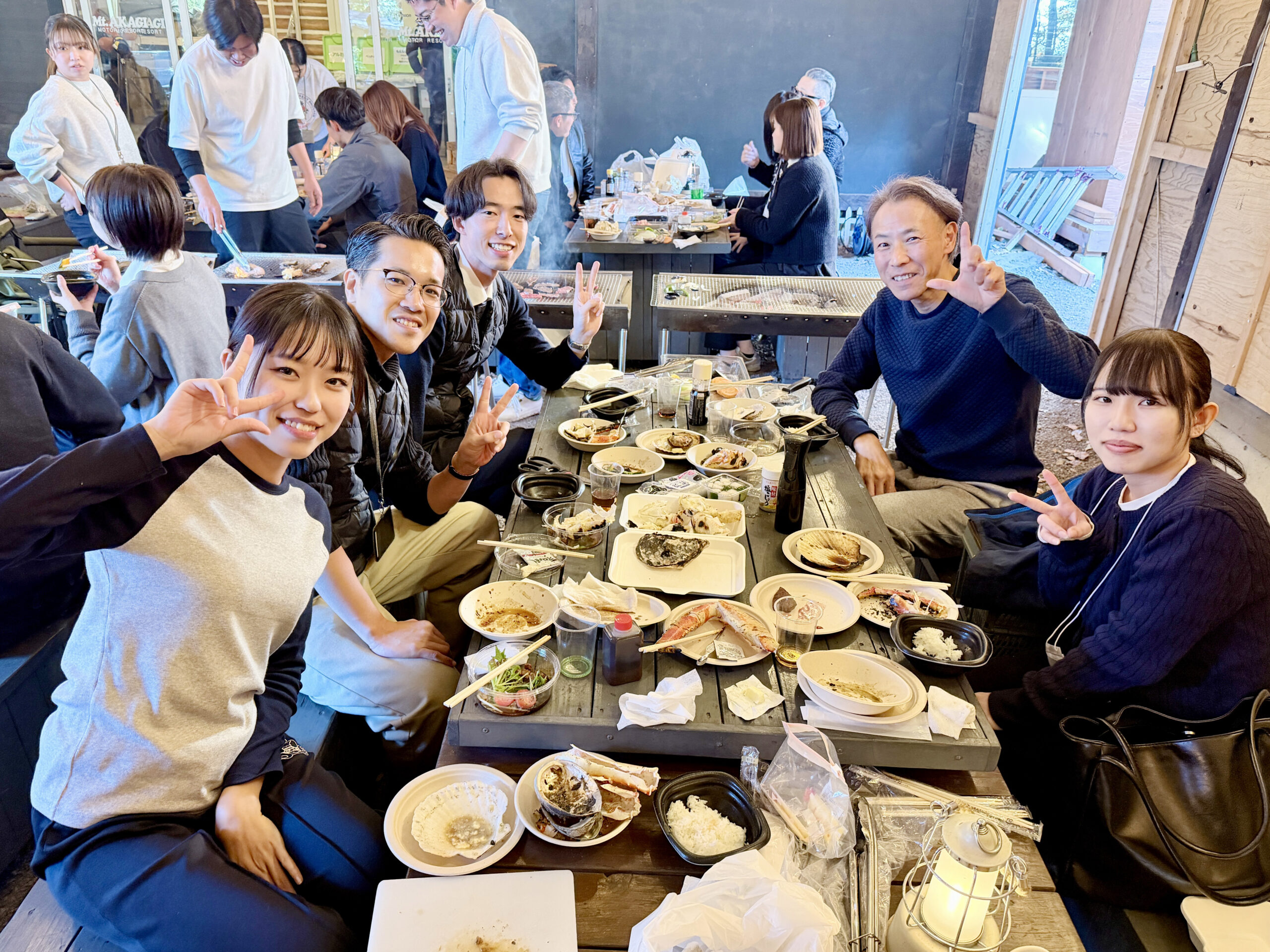 部長も先輩スタッフも内定者も、お肉を囲んでピース ![]()