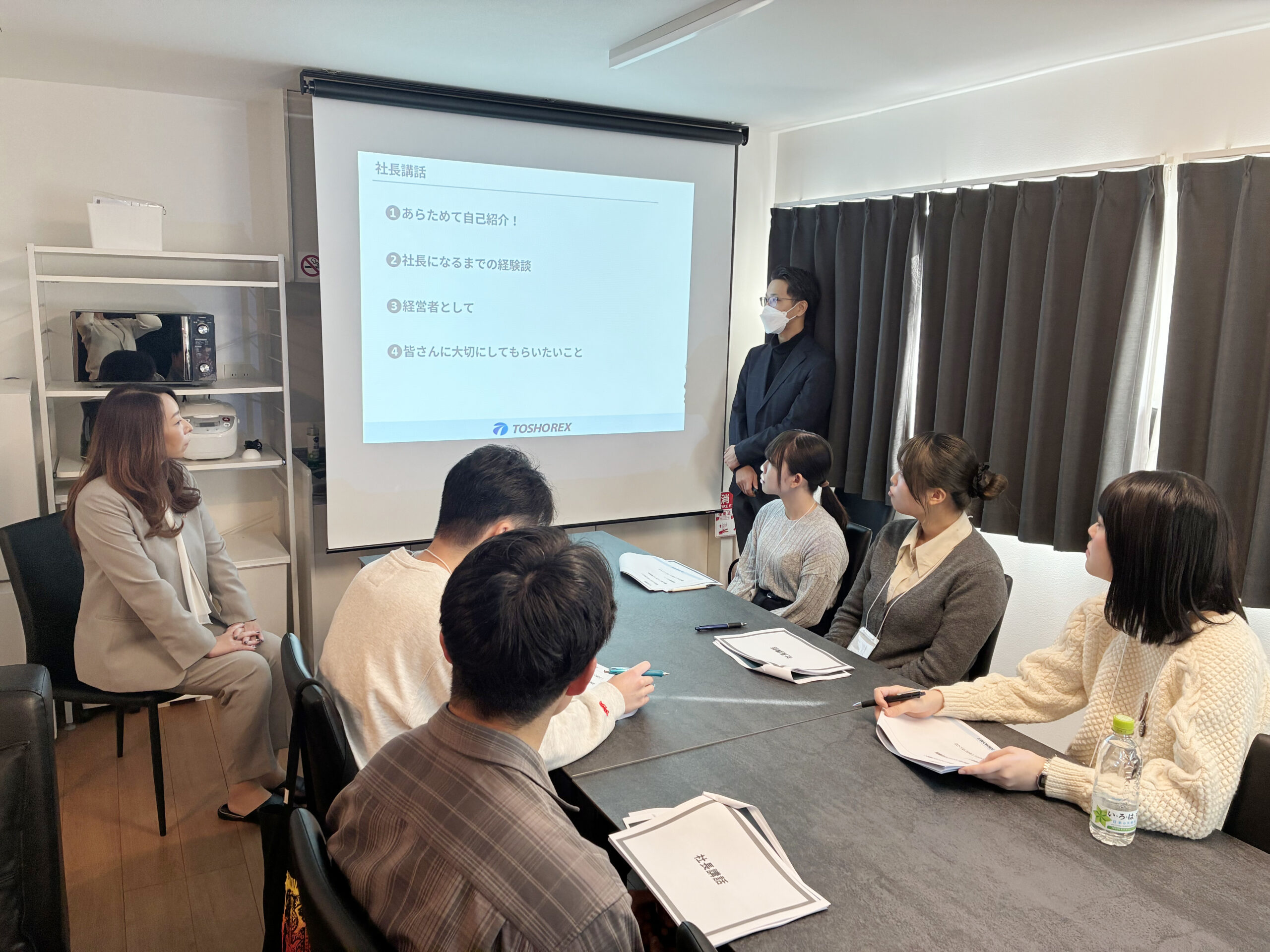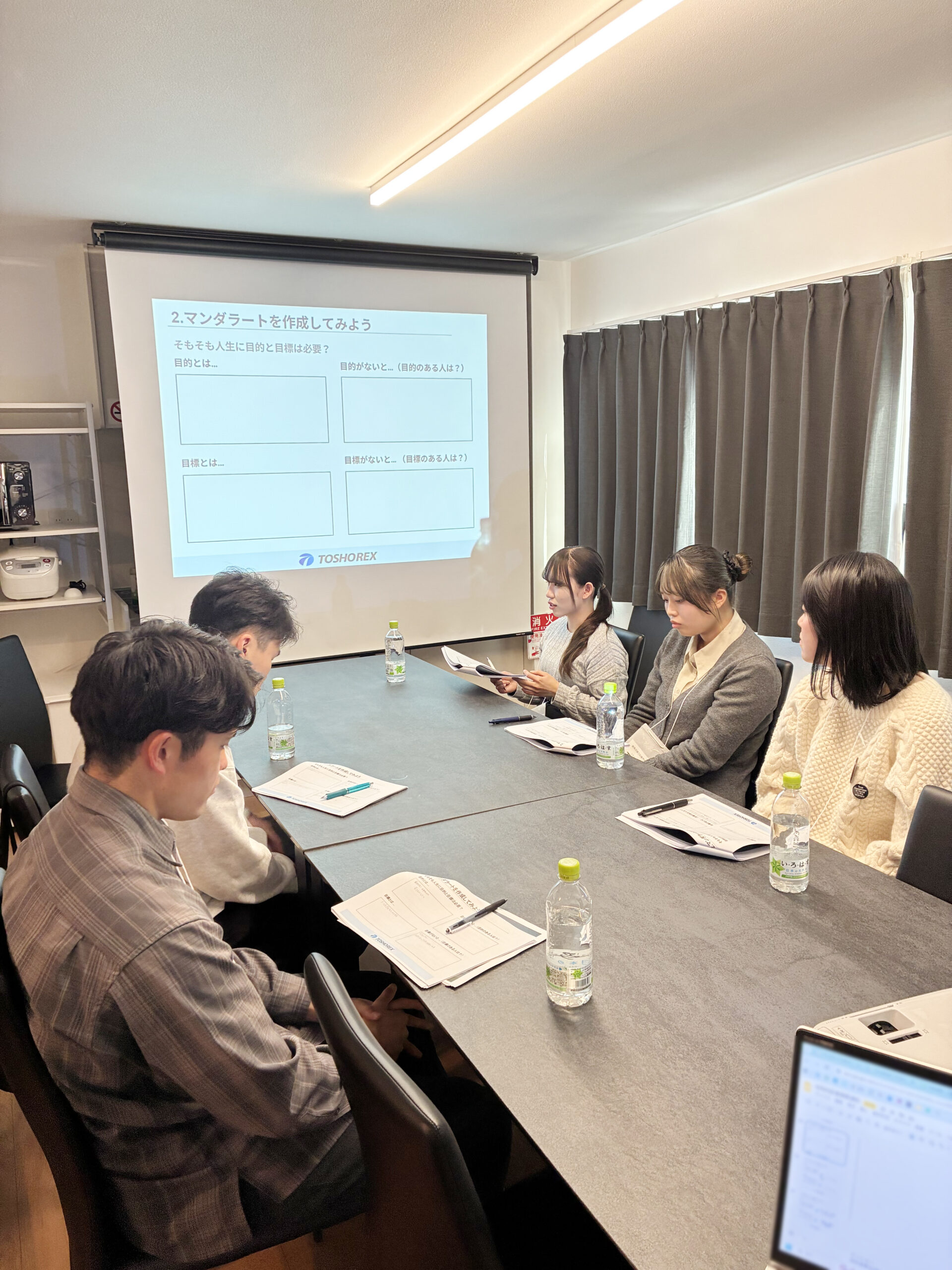 2026年の春に入社予定の5名の学生さんに集まって頂き、入社後に役立つ内容の座学や目標を考えるトウショウレックス流の研修です!皆さん頑張ってくれていました✨