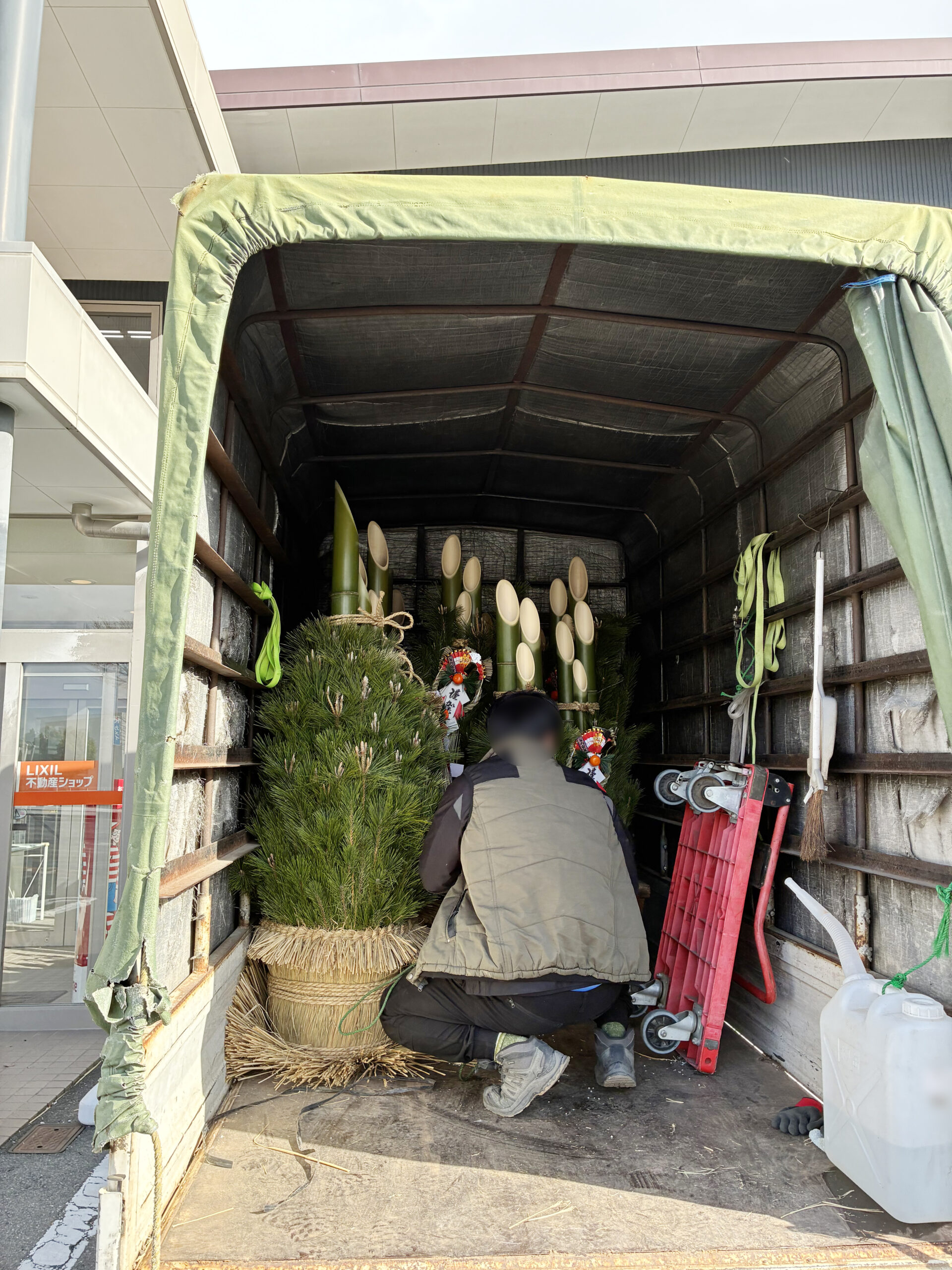 元旦にお迎えした年神様がいるとされる「松の内」の期間も終わり門松とお正月飾りを前橋市の赤城グリーン(株)さんに外してもらいました