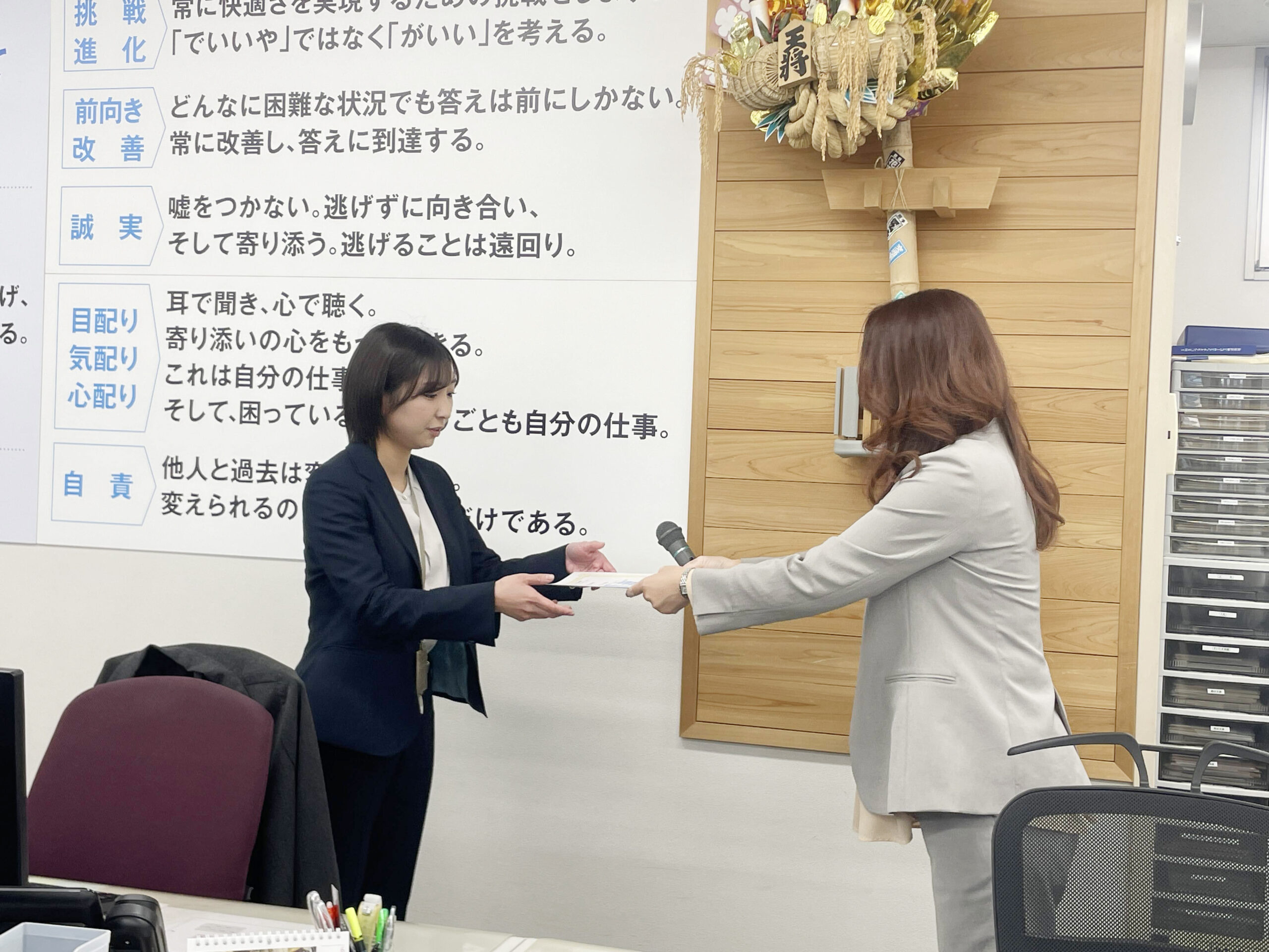 トウショウレックスでは、お客様に寄り添い、ご満足いただけるお取引を目指し目標を達成したスタッフに対して定期的に表彰を行っています。